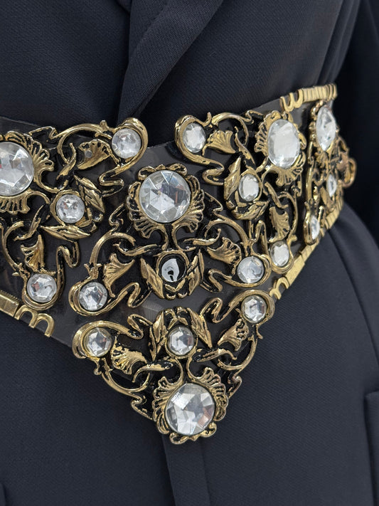 Brâu bijuterie auriu antichizat reglabil la spate pe bază transparentă