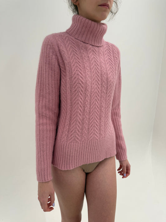 Maleta roz pudrat cu torsade din tricot excepțional de Angora