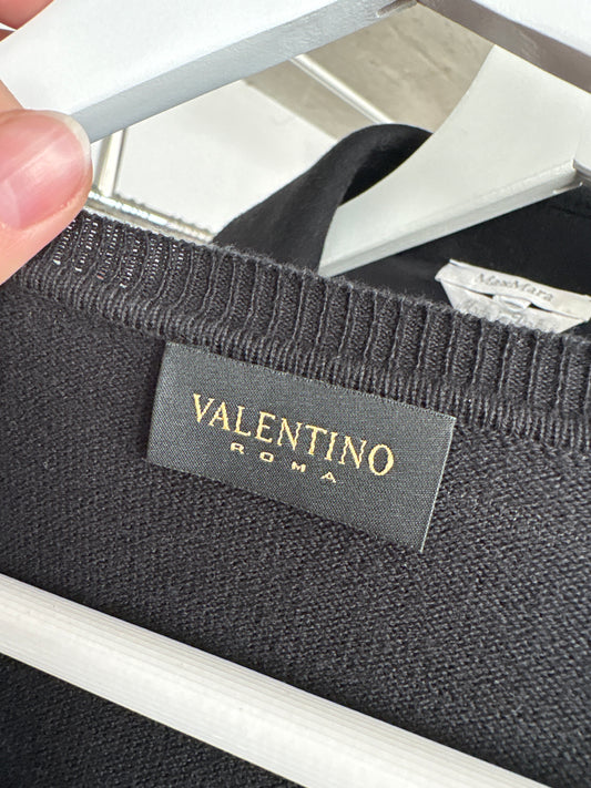 Puloveras Valentino negru din bumbac subțire ok anchior cu manșete înalte