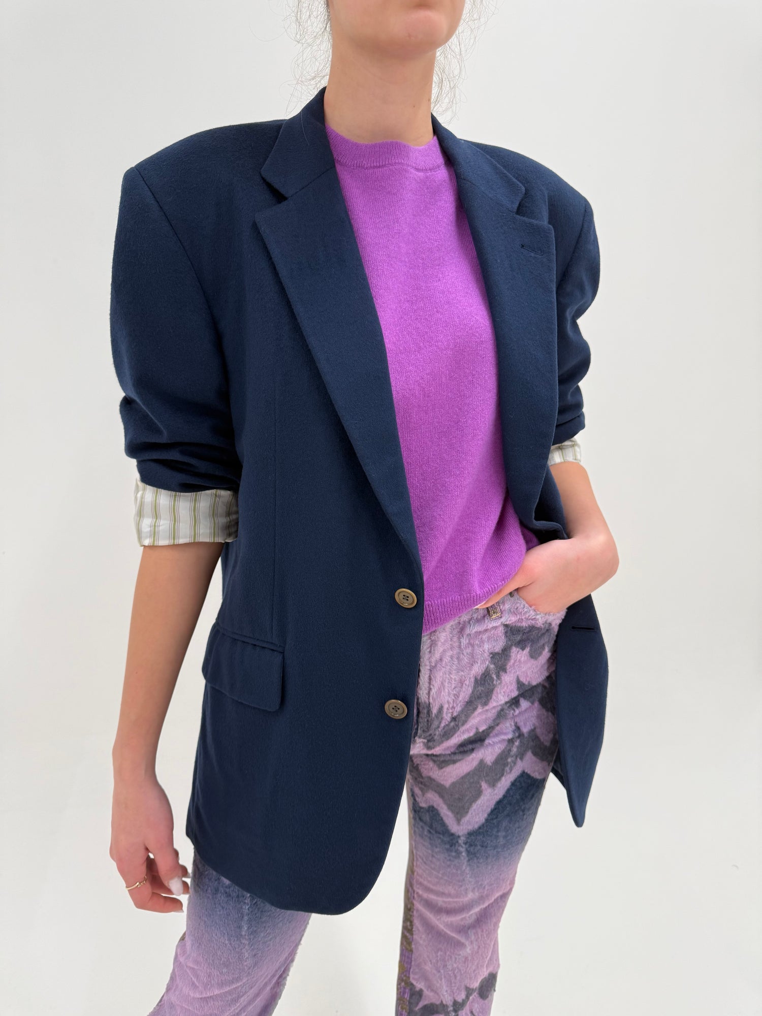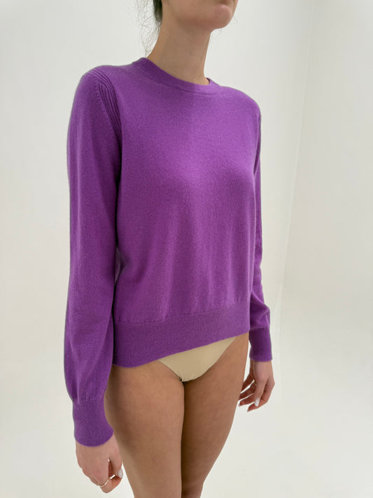 Pulover tall din cașmir amethyst purple crew neck cu manșete îngustate