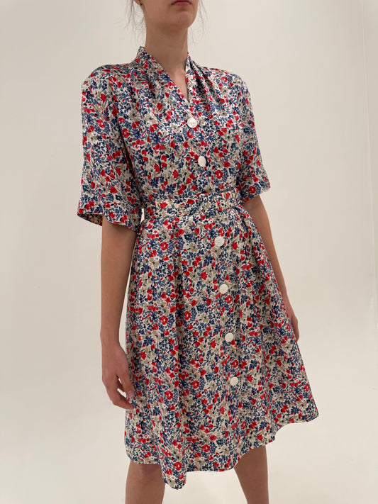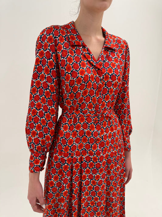 Rochie din twill de mătase naturală în croi super feminin cu centura proprie