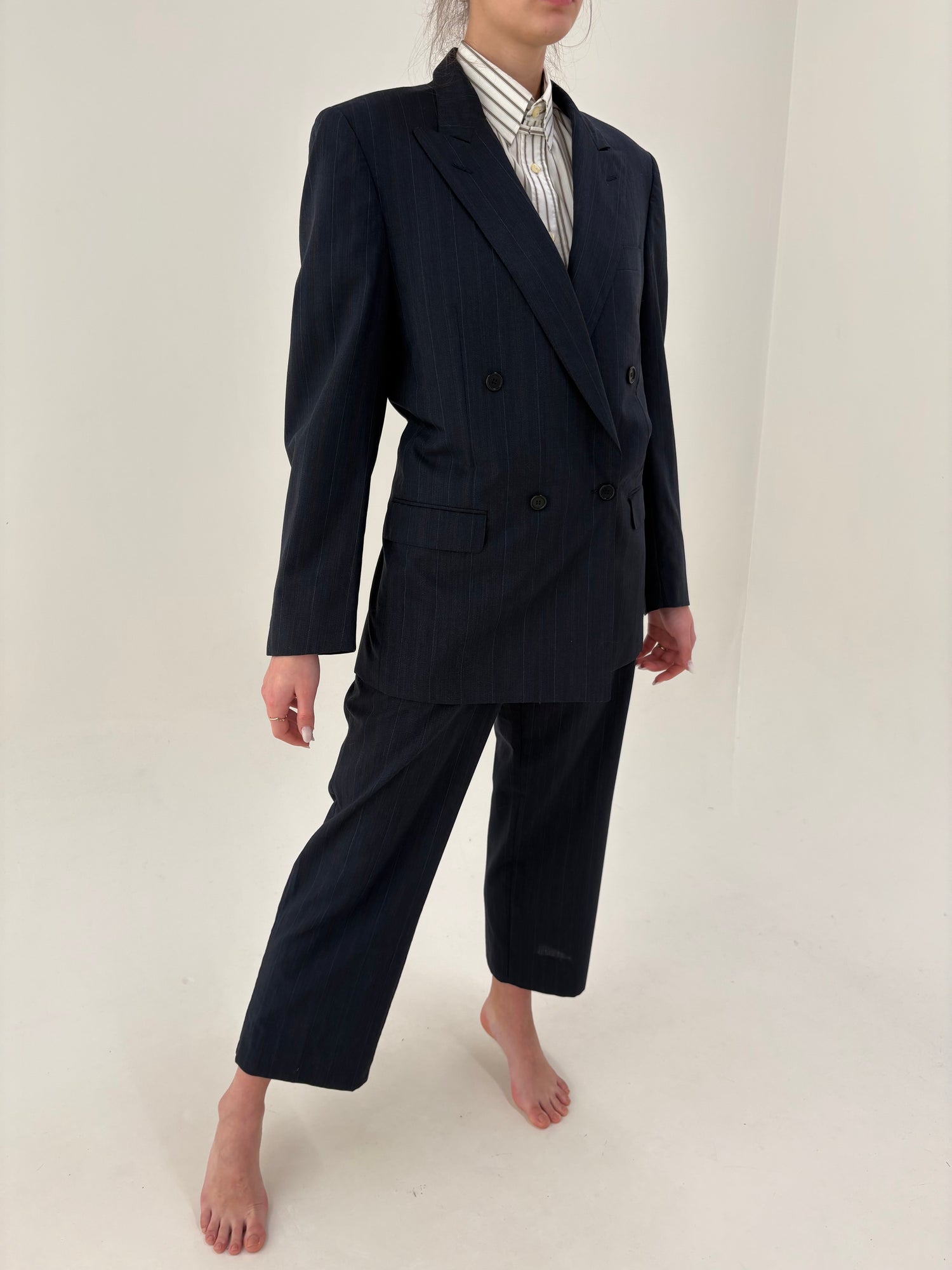 Oversized/ XLStoc epuizatSacou vintage Burberry jeans blue din stofă de lana pura structurată în croi actual