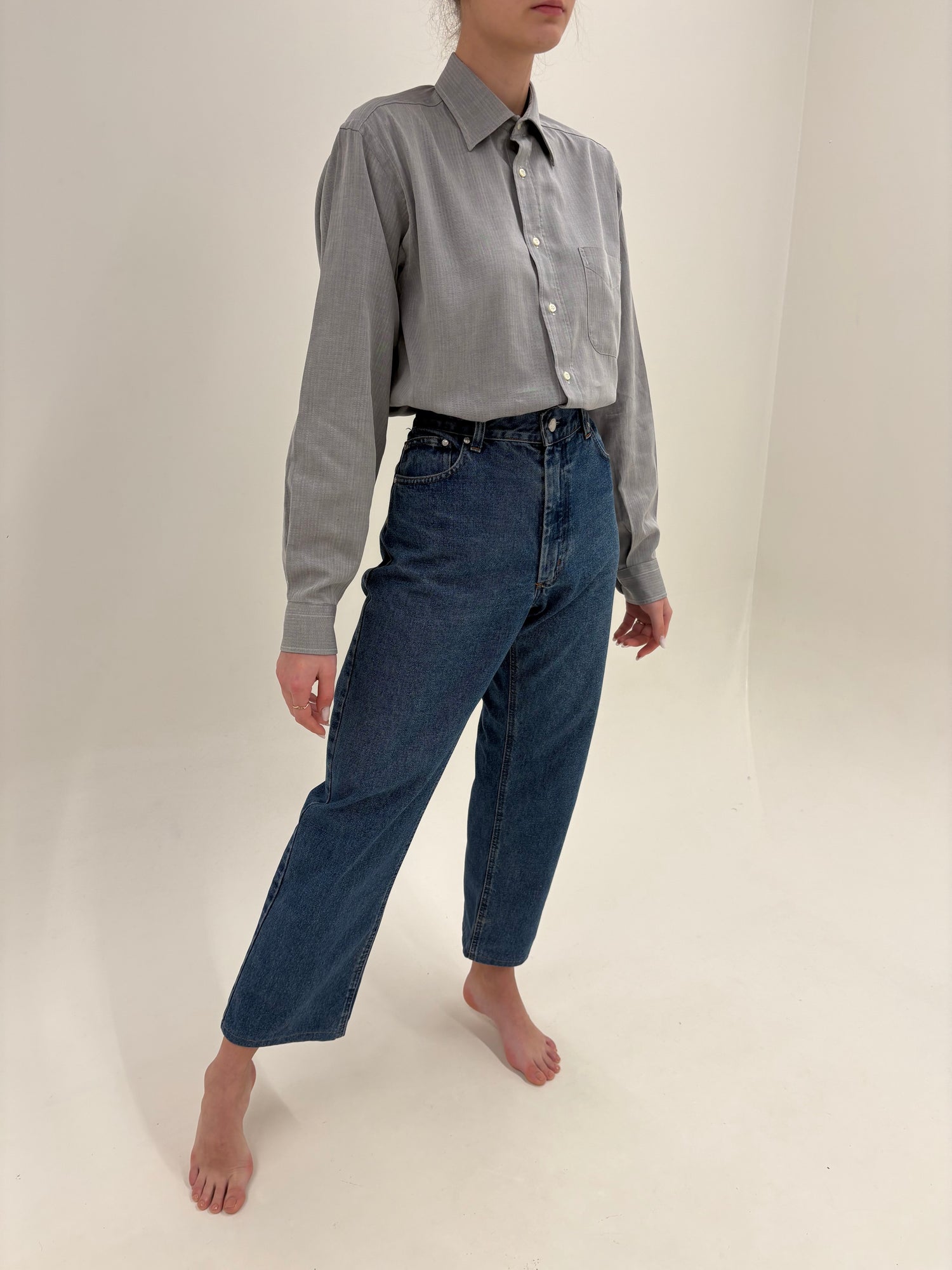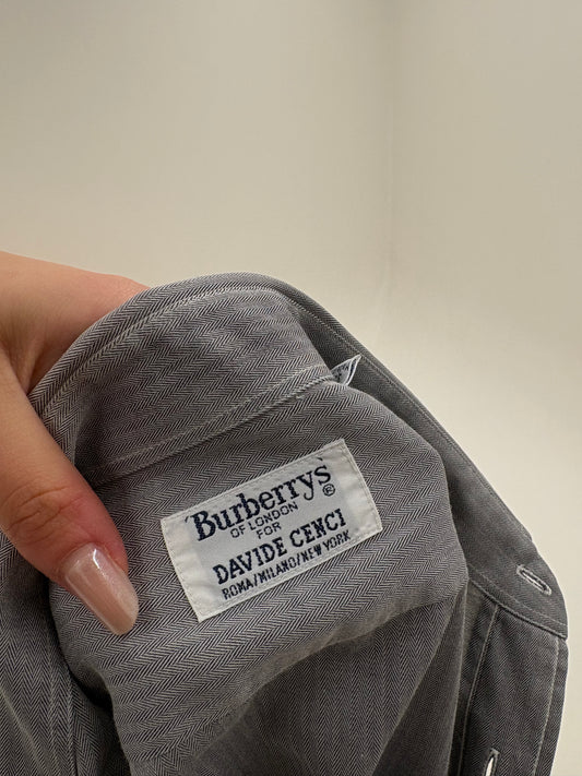 Cămașa old vintage Burberry anii 80-90 silver gray din poplin Chevron