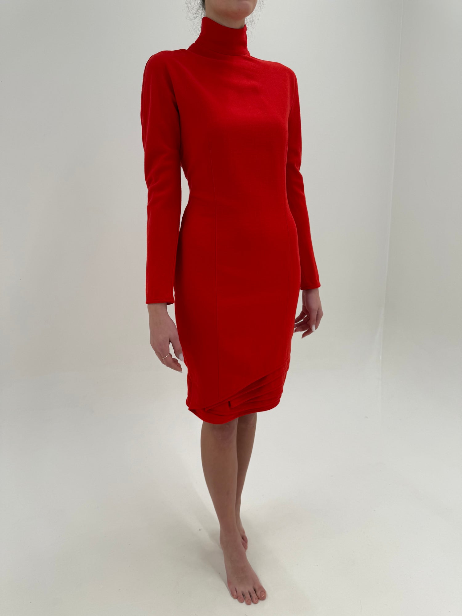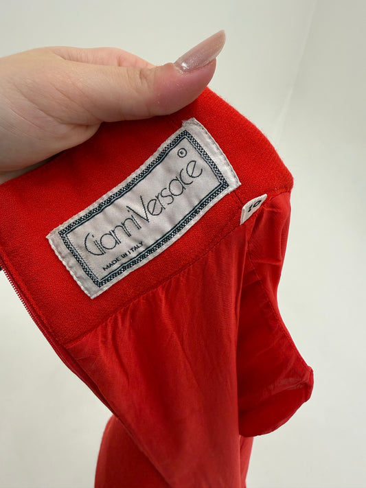 Rochie Versace anii 90 în croi bodycon cu tiv elaborat roșu tare