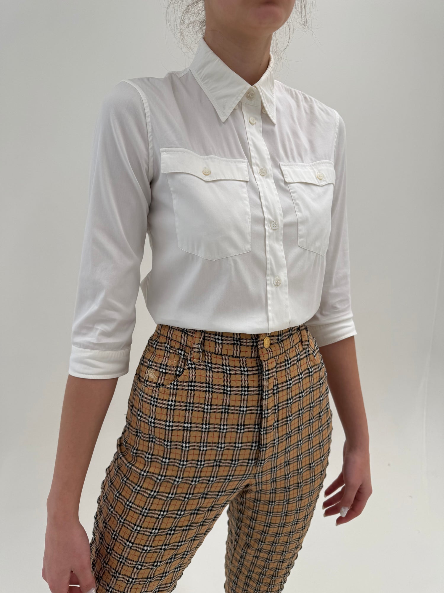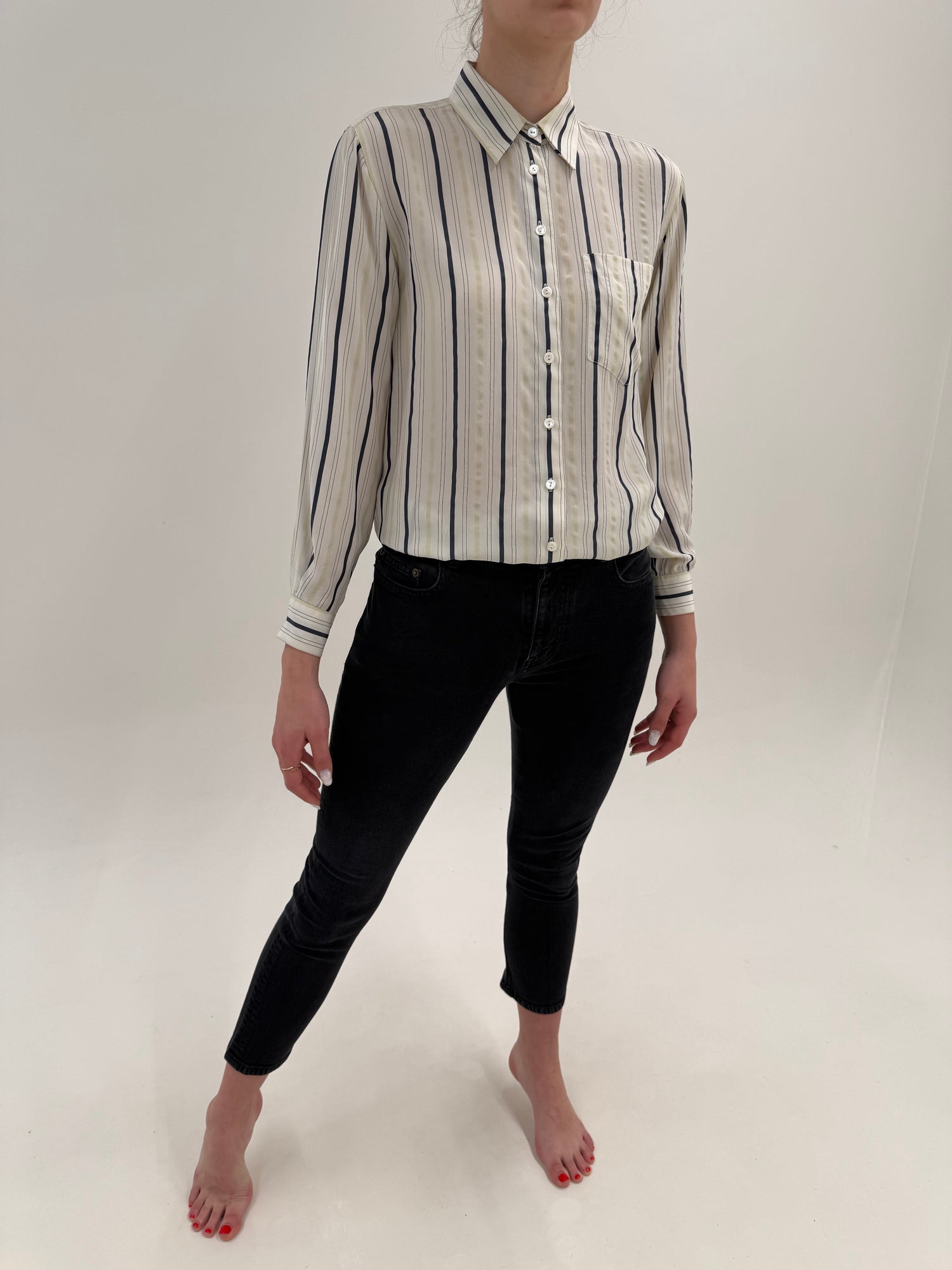 Cămașa vintagedin mătase naturală texturată cu nasturi YSL