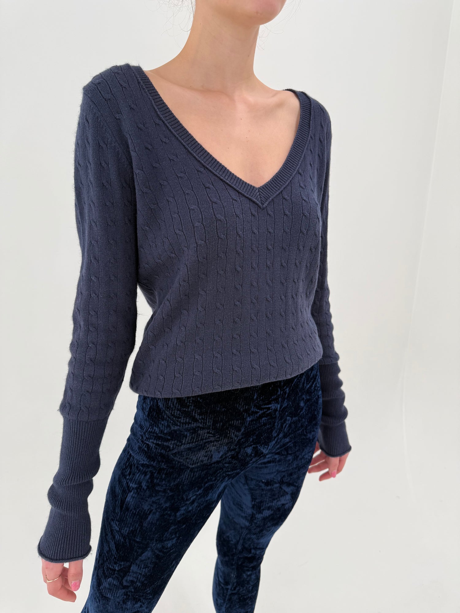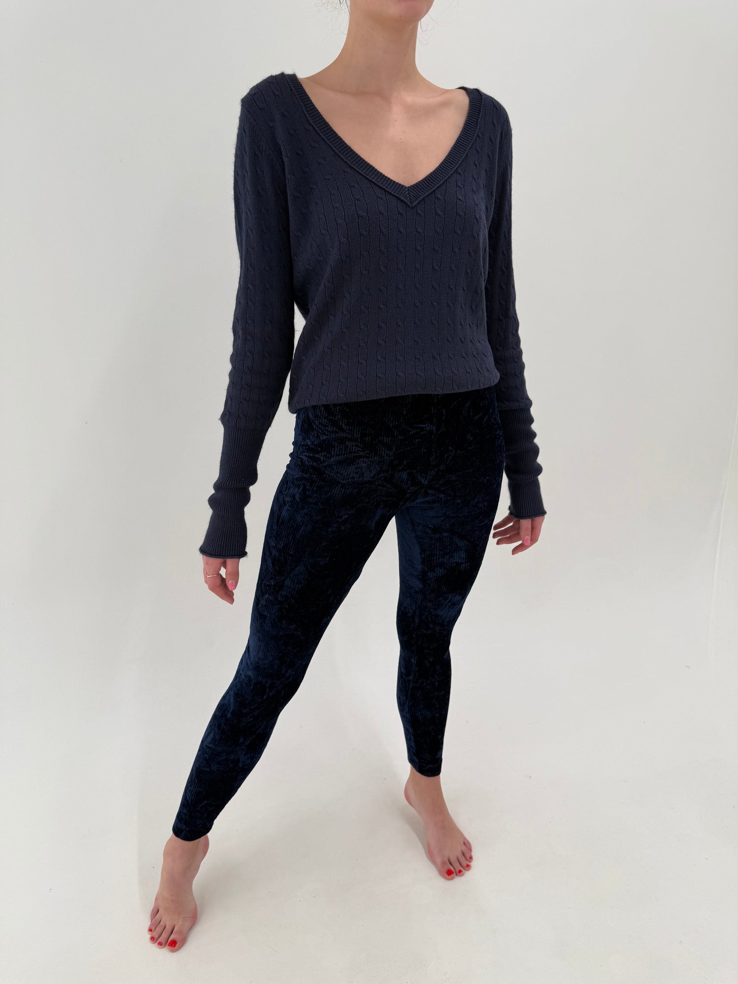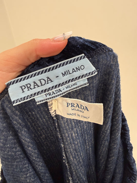Pantaloni Prada albastru cerneală din catifea cu talie ultra înaltă