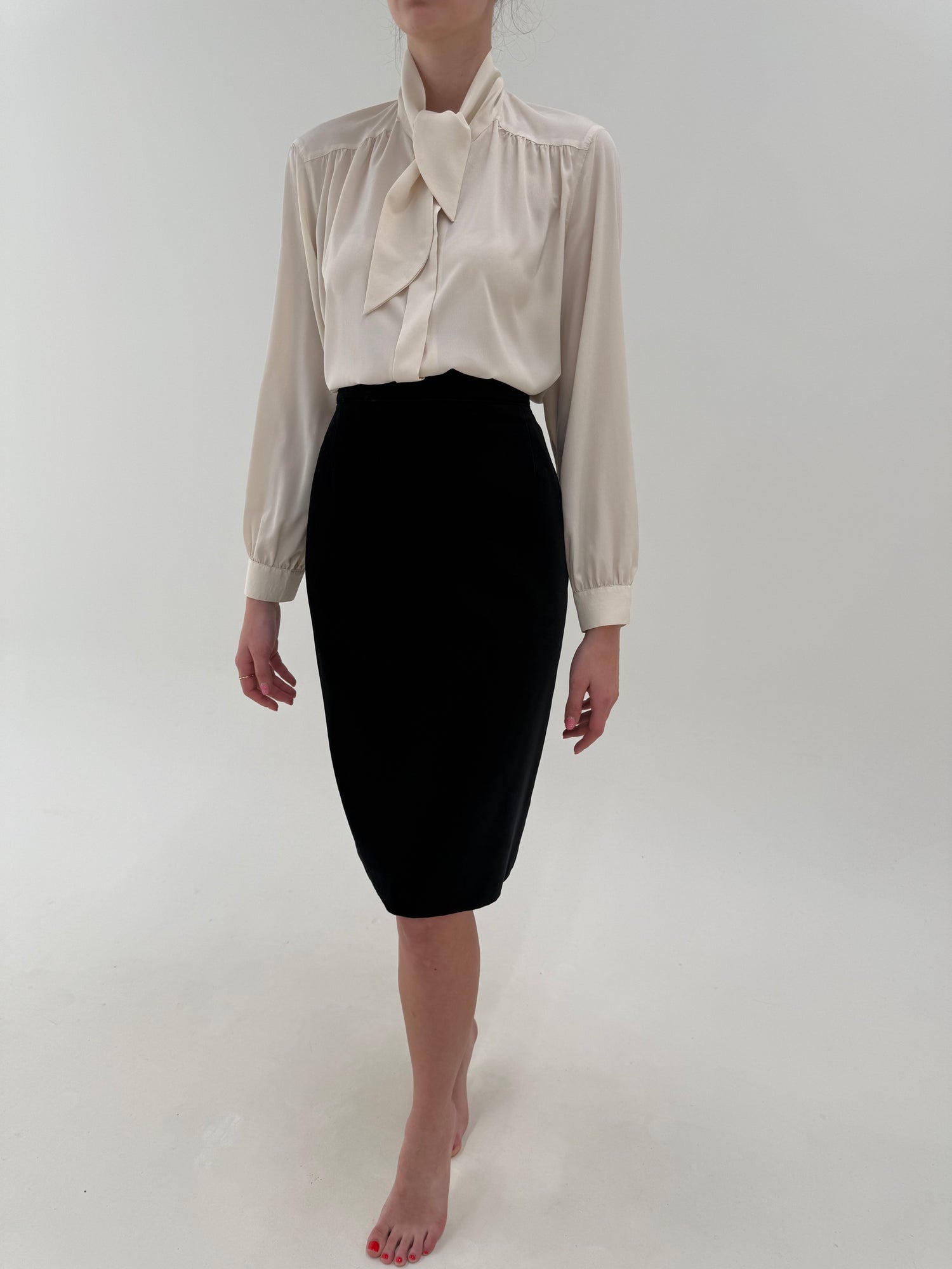 Fustă Max Mara creion din catifea neagră cu talie ultra înaltă marcată midi