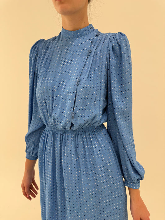 Rochie vintage baby Blue cu buline și talie ultra înaltă elastică