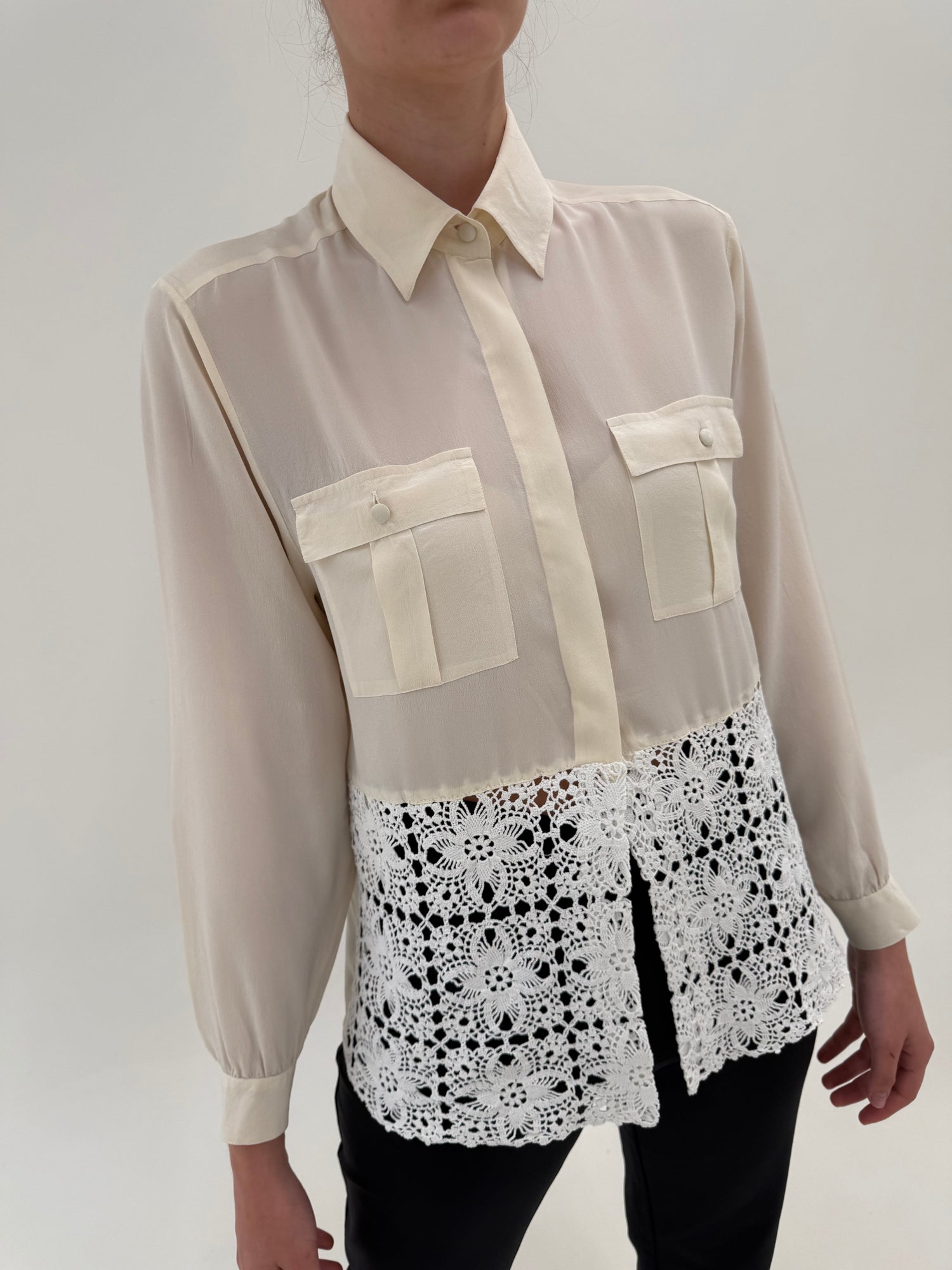 Cămașa din mătase naturală cu dantelă macrame lucrată manual