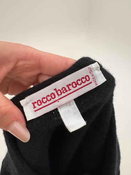 Cardigan vintage Rocco Barocco tip jachetă din tricot negru de lana extrafina cu auriu