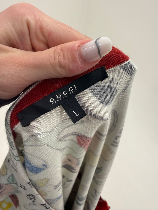 Puloveras Gucci din cașmir baby blue cu print