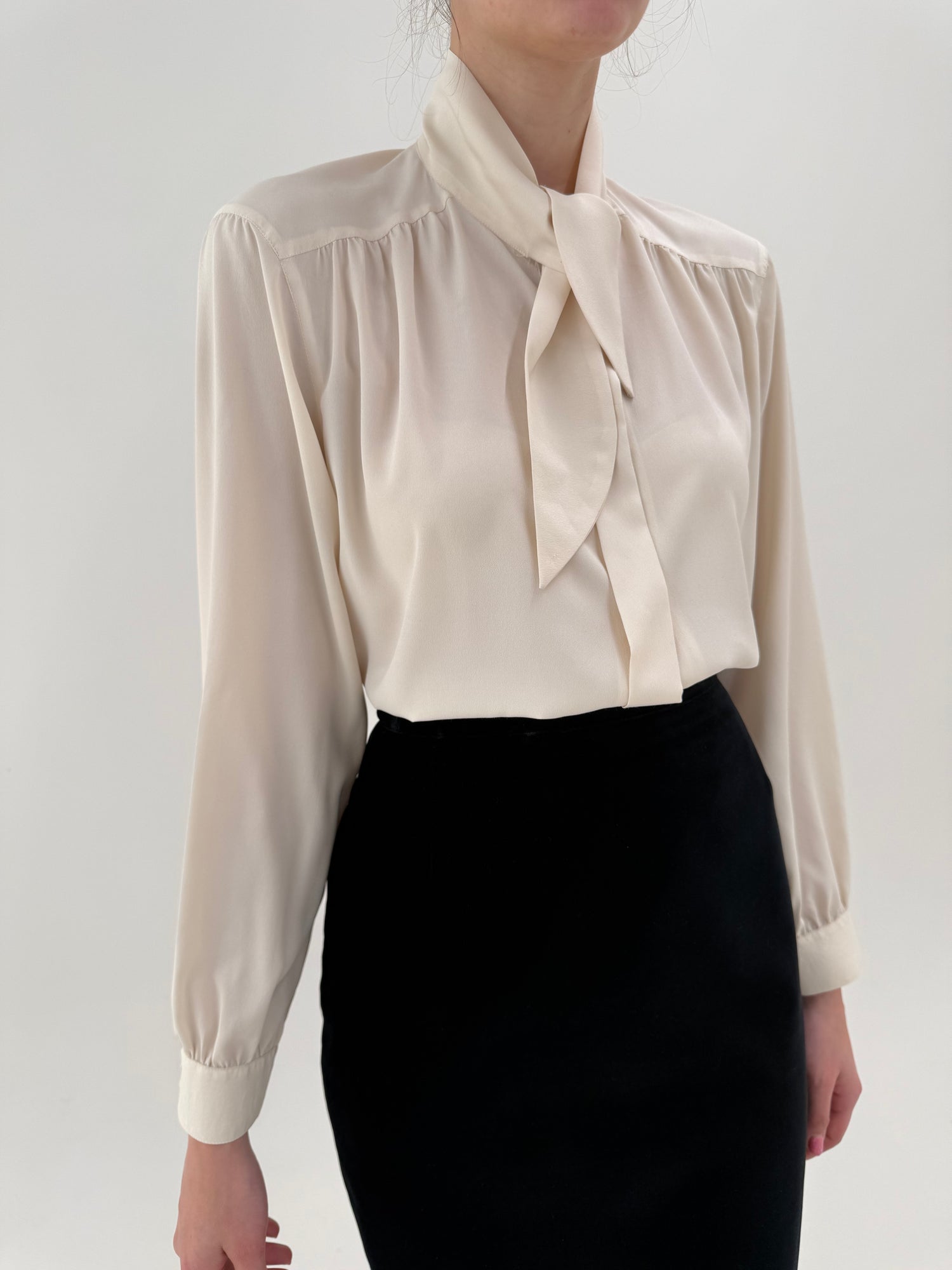 Cămașa vintage Max Mara din mix de mătase naturală cu panglică la gât