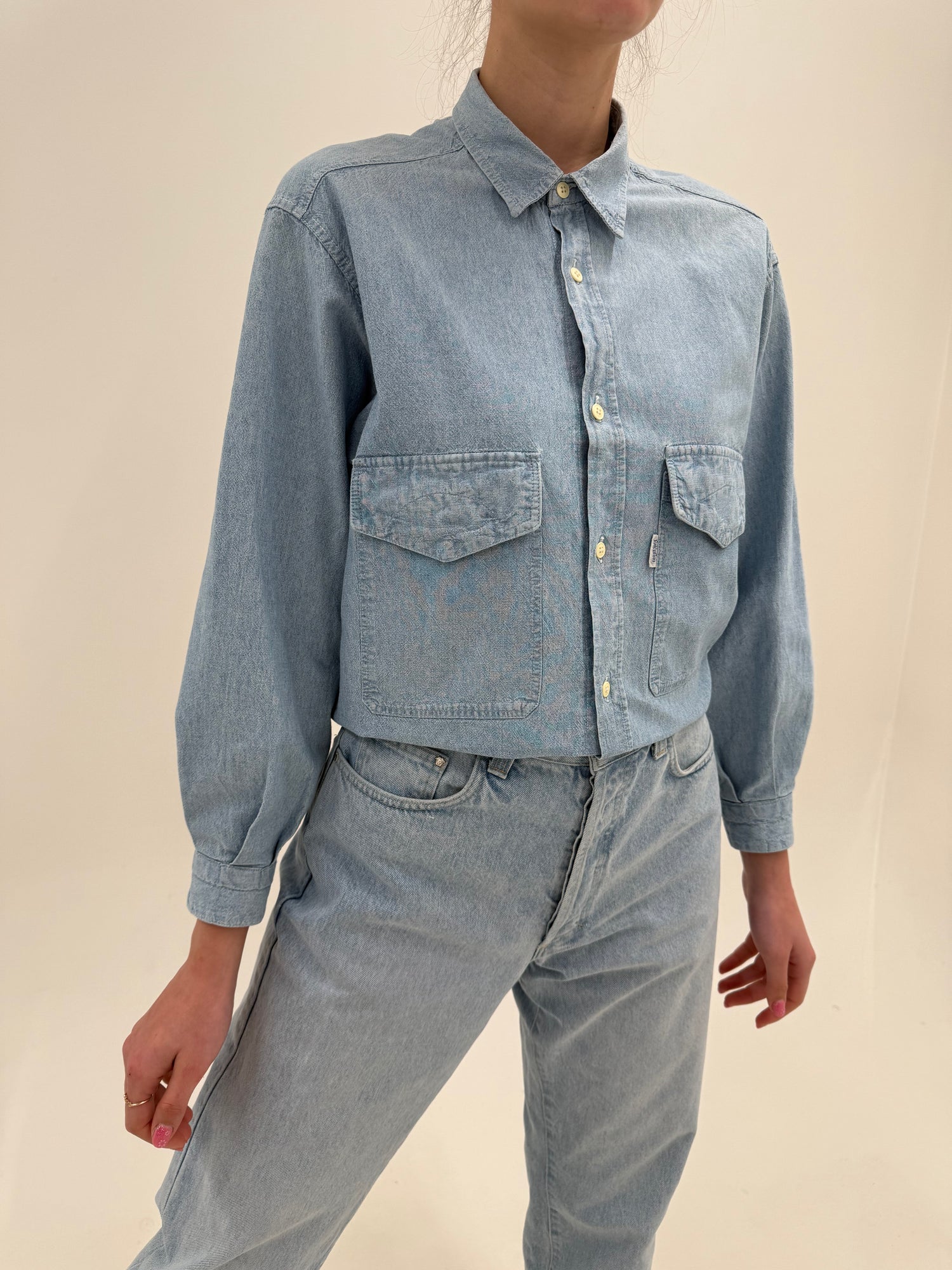 Cămașa vintage Valentino din jeans extrem de moale light wash