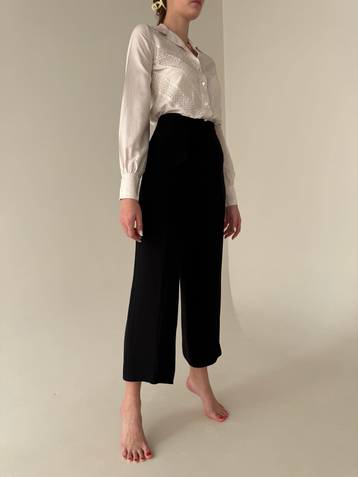 Rochie vintage de designer italian din mătase naturală butter white cu buline