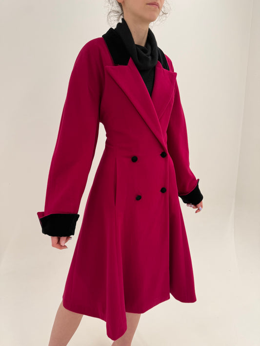 Palton magenta cambrat din stofă excepțională de lana cu cașmir