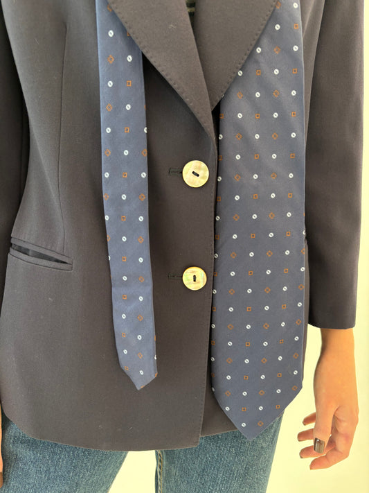 Cravata Navy în combinație clasică de culori din mătase naturală