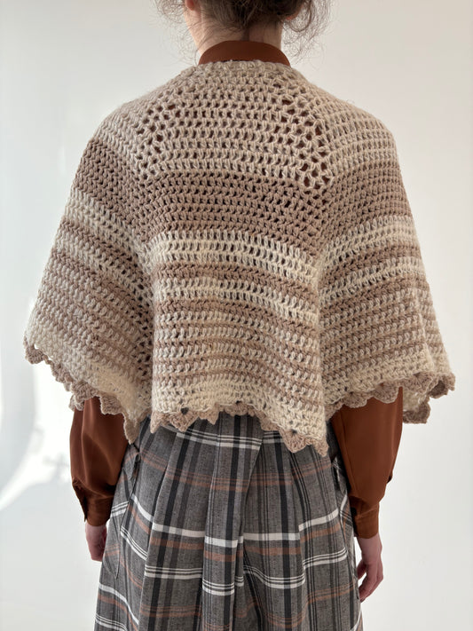 Capa vintage în nuanțe de nude lucrată manual din lana extrafina plină