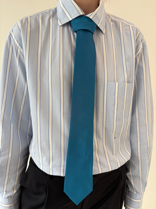 Cravata italiană în dungi lime și baby blue din mătase naturală