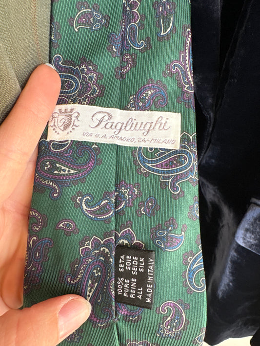 Cravata verde cu print paisley italiană ușor mai slim din mătase naturală
