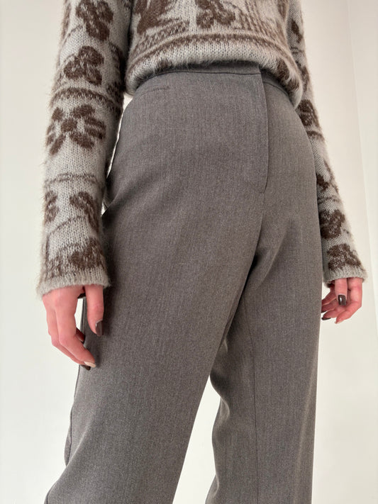 Pantaloni kaki cu pense și talie înaltă din lana extrafina