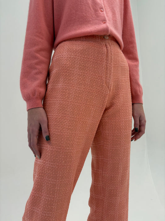 Pantaloni în stil Chanel din tweed excepțional salmon pink