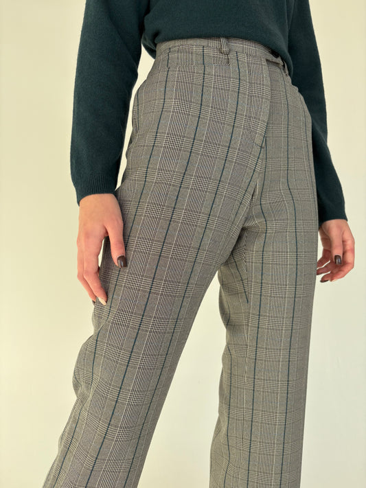 Pantaloni în carouri din lana extrafina strech confort cu talie înaltă mom fit
