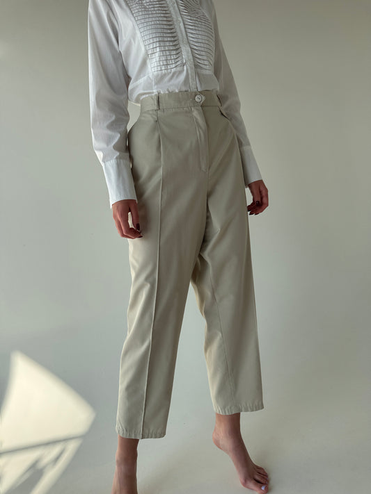 Pantaloni light nude țigaretă cu talie ultra înaltă din lana extrafina