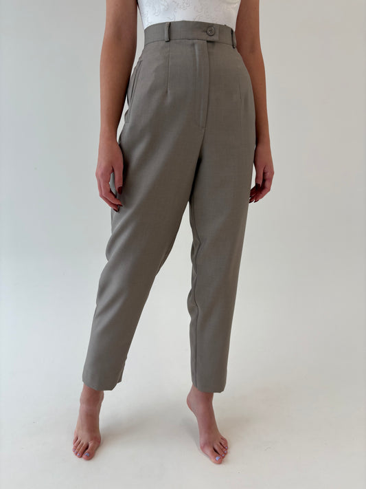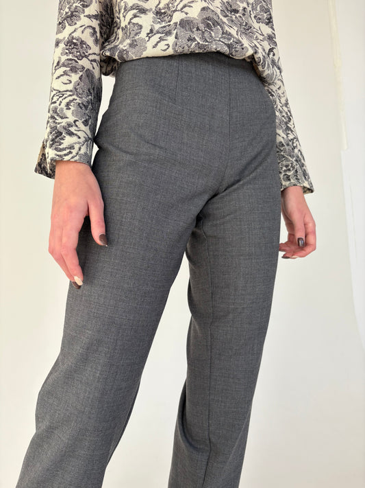 Pantaloni țigaretă din lana extrafina pura certificată cu talie ultra înaltă