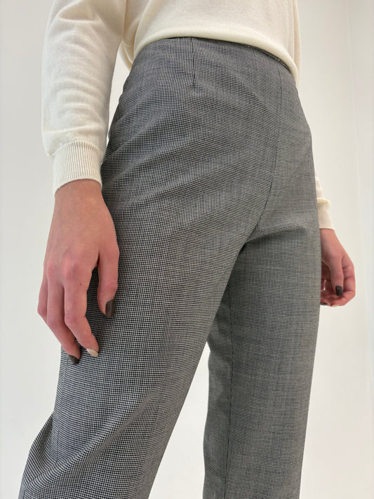 Pantaloni țigaretă pied de coq alb negru mărunt din lana extrafina