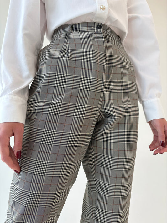 Pantaloni țigaretă don lana extrafina în carouri cu talie ultra înaltă