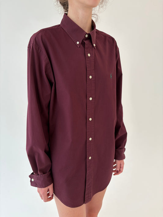 Cămașa Ralph Lauren burgundy în croi oversized din bumbac gros