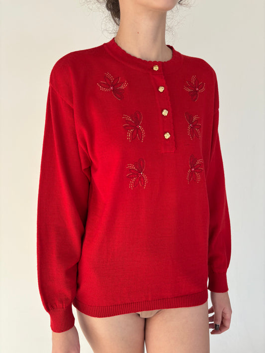 Oversized/ LStoc epuizatPulover vintage cherry red cu mânecă fluture din lana extrafina de gramaj mare