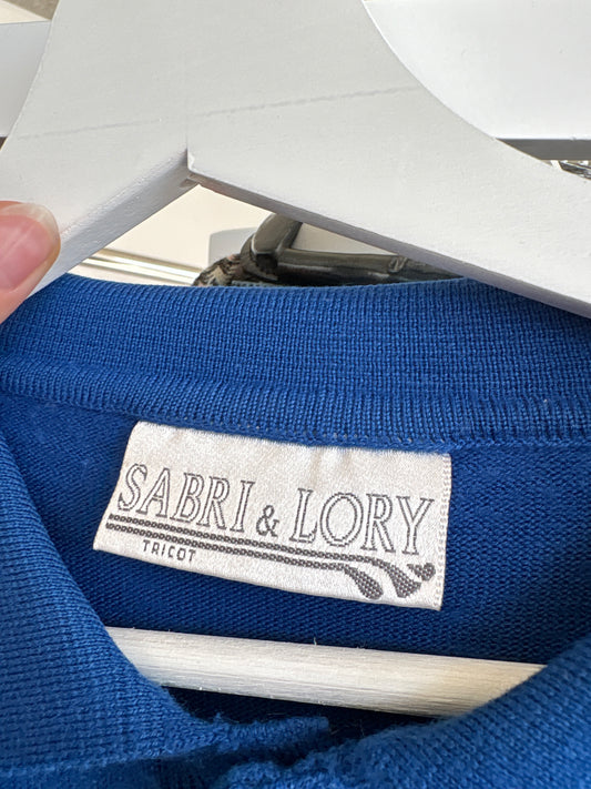 Pulover vintage polo italian albastru regal din lana merino extrafina