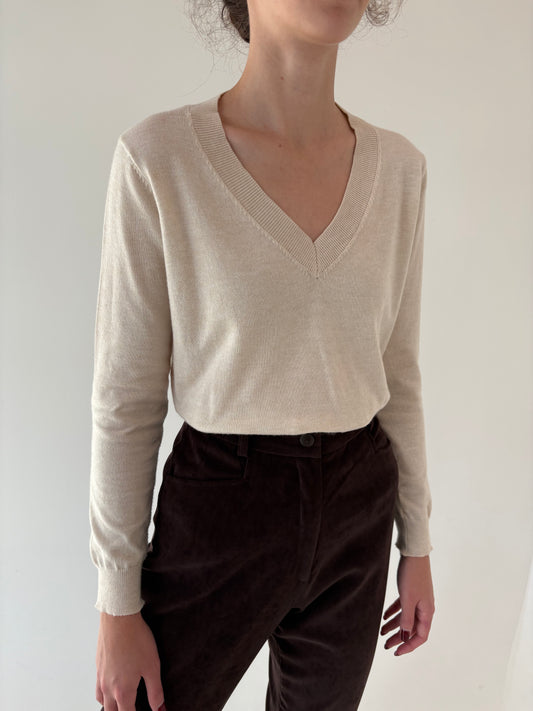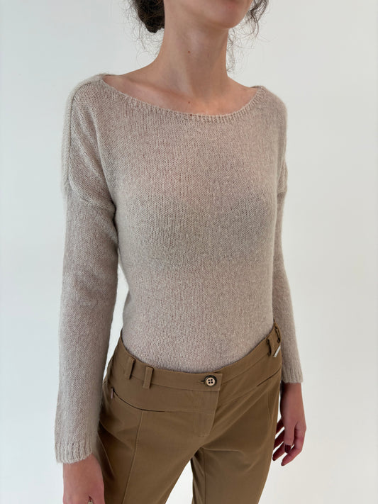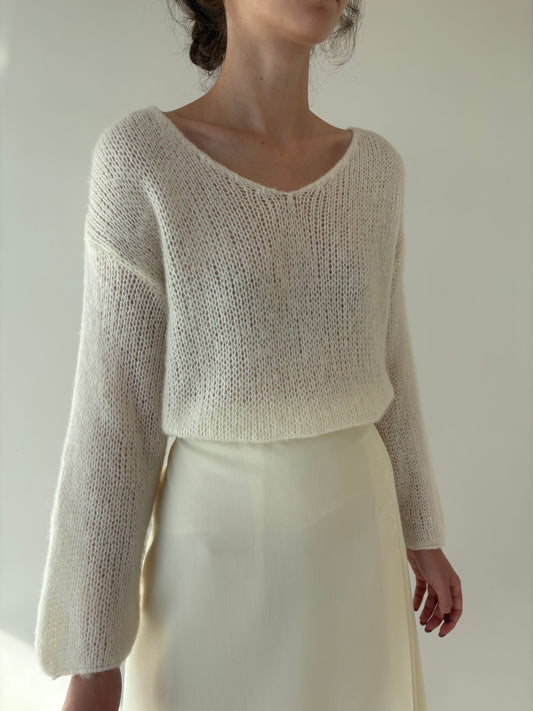 Puloveras butter white în croi lejer din baby mohair și extrem de fin