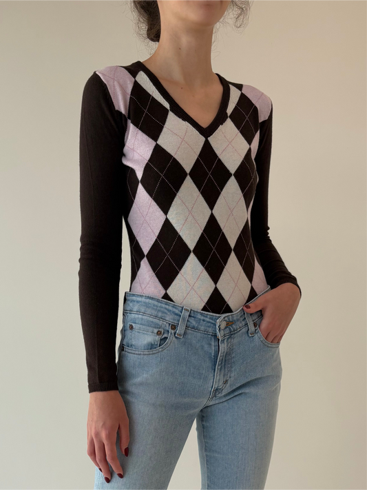 Puloveras cu romburi italian din bumbac cu un touch de cașmir