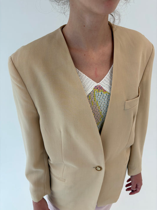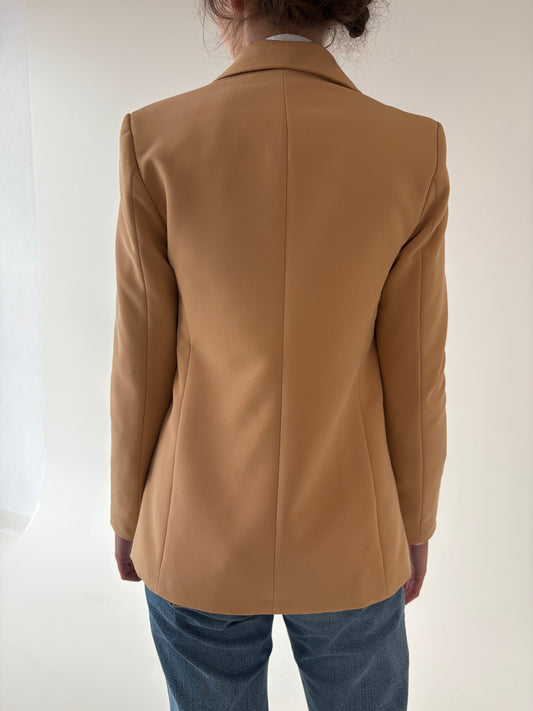 Sacou camel cu închidere dublă și nasturi aurii de brand italian