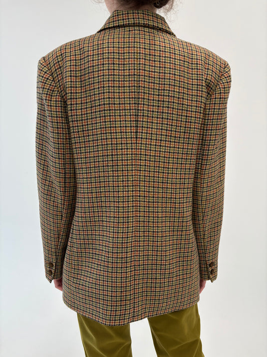 Sacou camel pied de coq în carouri din tweed gros în culori clasice