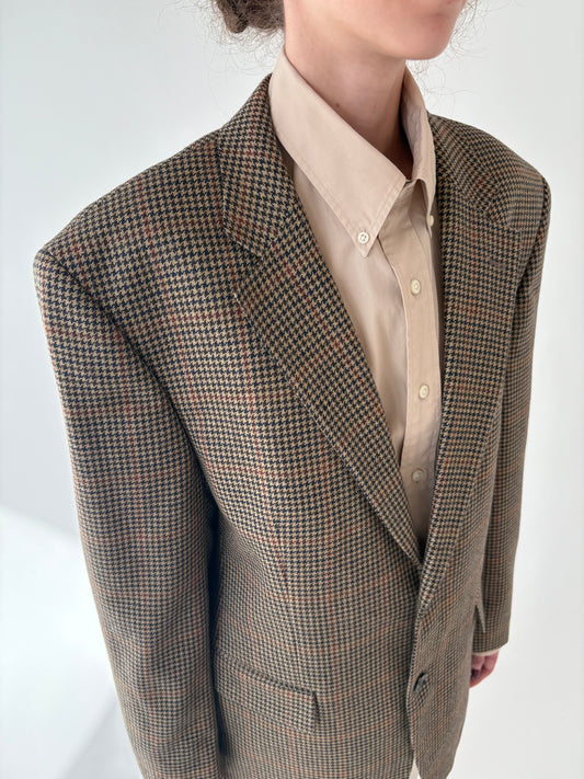 Sacou camel din tweed pied du coq excepțional de lana pura certificată extrafina