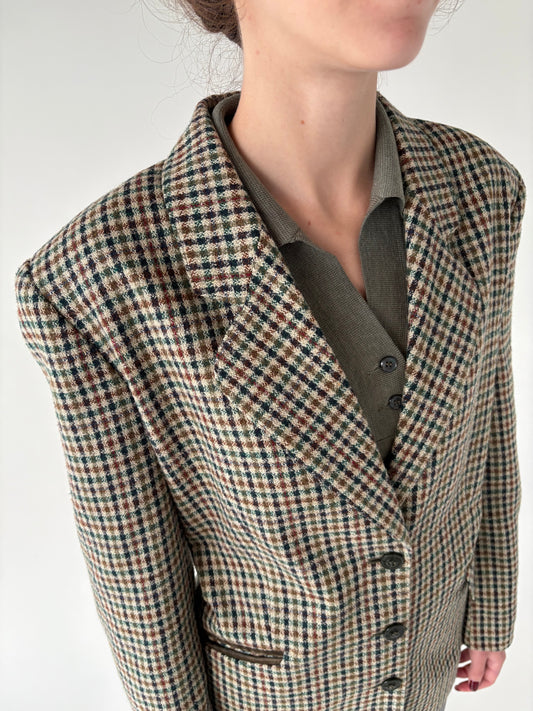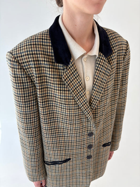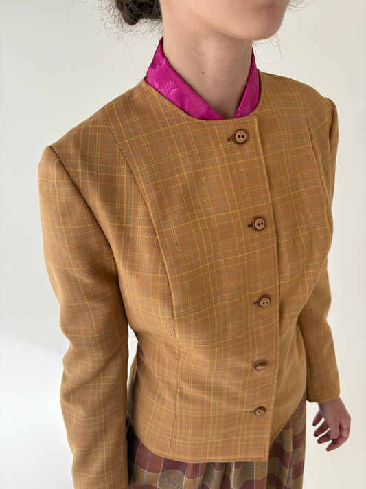 Sacou camel în carouri pied du coq din lana extrafina mai plină