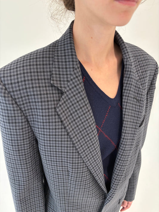 Sacou italian în carouri Navy cu chocolate brown din lana super 110’s