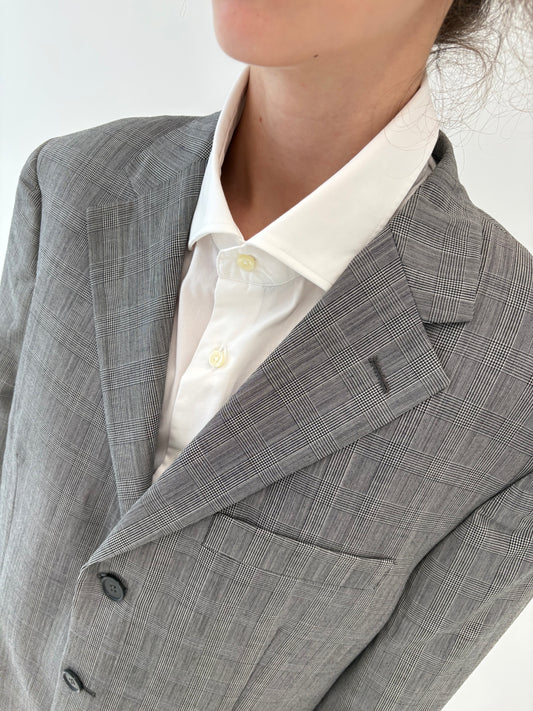 Sacou italian în carouri alb negru din stofă de lana super 100’s