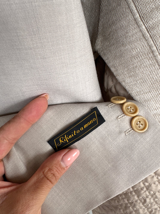 Sacou luxury italian light nude nou din lana pura virgină certificată extrafina