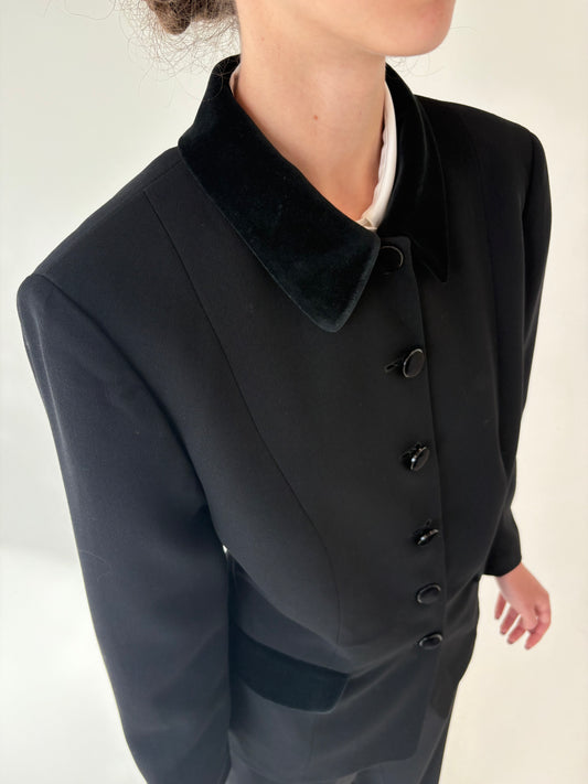 Sacou old vintage negru ultra cambrat în stil Dior din lana extrafina