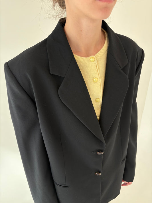 Sacou negru Max Mara din stofă de lana extrafina confort în croi ușor cambrat