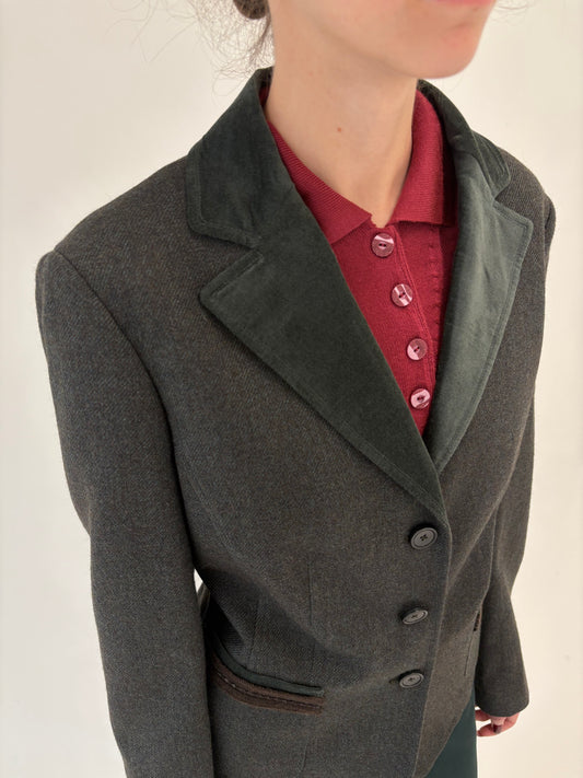 Sacou vintage dark green gray din lana extrafina în croi ușor cambrat