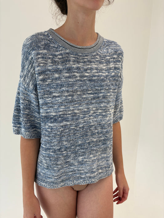 Top italian în nuanțe de albastru și off white din jerse de gramaj mare