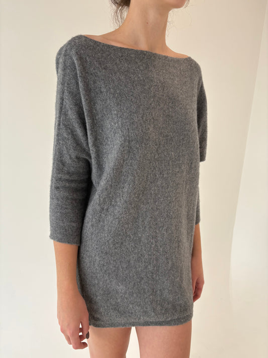 Top lung cu decolteu bărcuță și mânecă fluture din lana extrafina