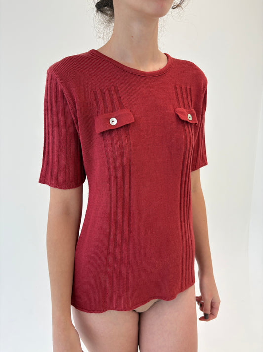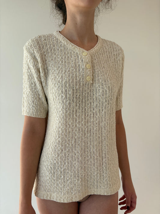 Top vintage butter white din tricot de bumbac texturat de gramaj mare
