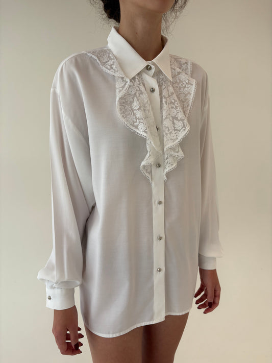 Cămașa vintage cu jabou super bogat și volane la mâneci