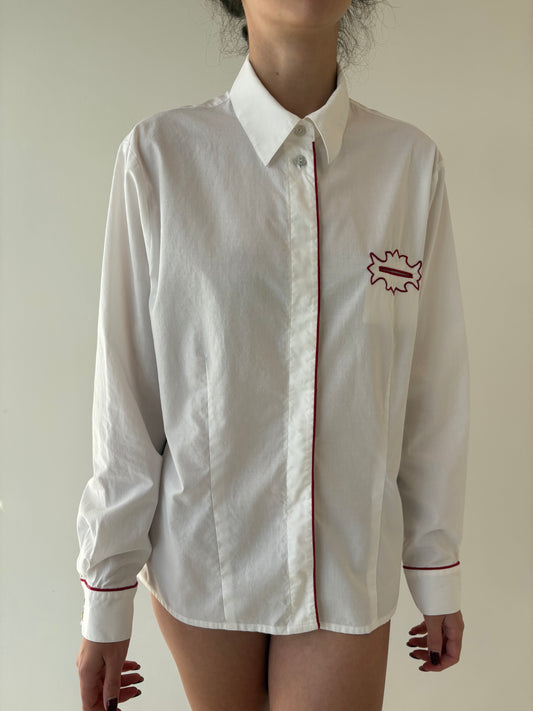 Cămașa vintage cu paspoal negru și nasturi decorativi
